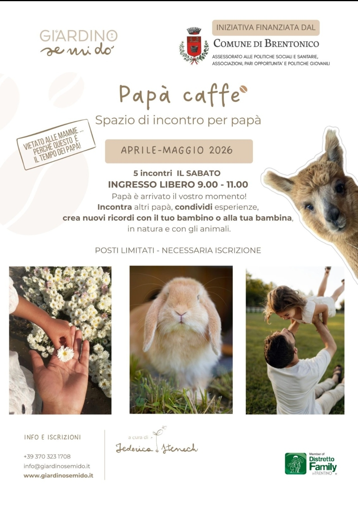 Descrizione Ciclo di incontri per papà per condividere esperienze e creare nuovi ricordi insieme ai propri bimbi a contatto con la natura e gli animali.Periodo aprile e maggio 2026Posti limitati - iscrizione obbligatoria
