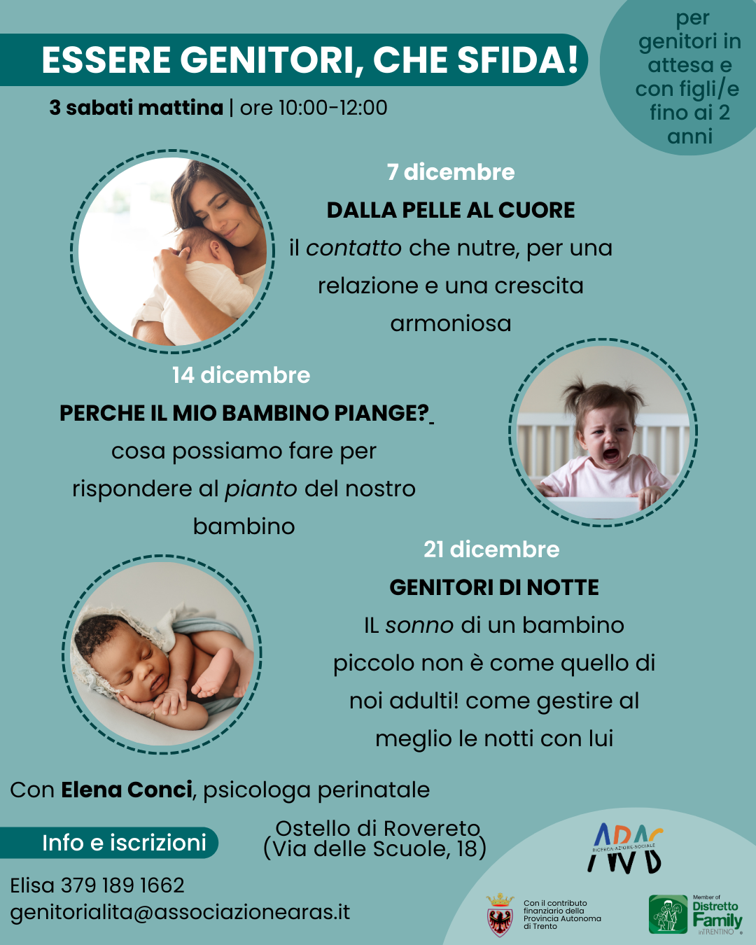 - sabato 14 dicembre dalle 10.00 alle 12.00: Perché il mio bambino piange?