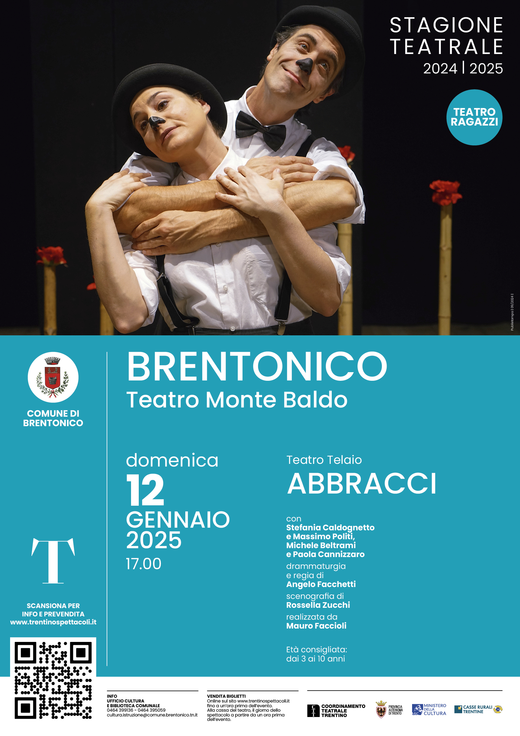 Un gesto che i bambini cercano e sentono come naturale all’interno del loro orizzonte affettivo, ma che si deve imparare ad ogni nuovo incontro. Abbracci segna dunque un nuovo passo del Teatro Telaio verso un’esplorazione fenomenologica degli affetti. Dopo aver assistito alla nascita di un’amicizia in Storia di un bambino e di un pinguino, in questo nuovo capitolo si parte alla scoperta dell’affettività e di quanto sia difficile esprimerla. Si tratta di un ambito che può far sorridere, emozionare e far riflettere tutti, bambini e adulti.