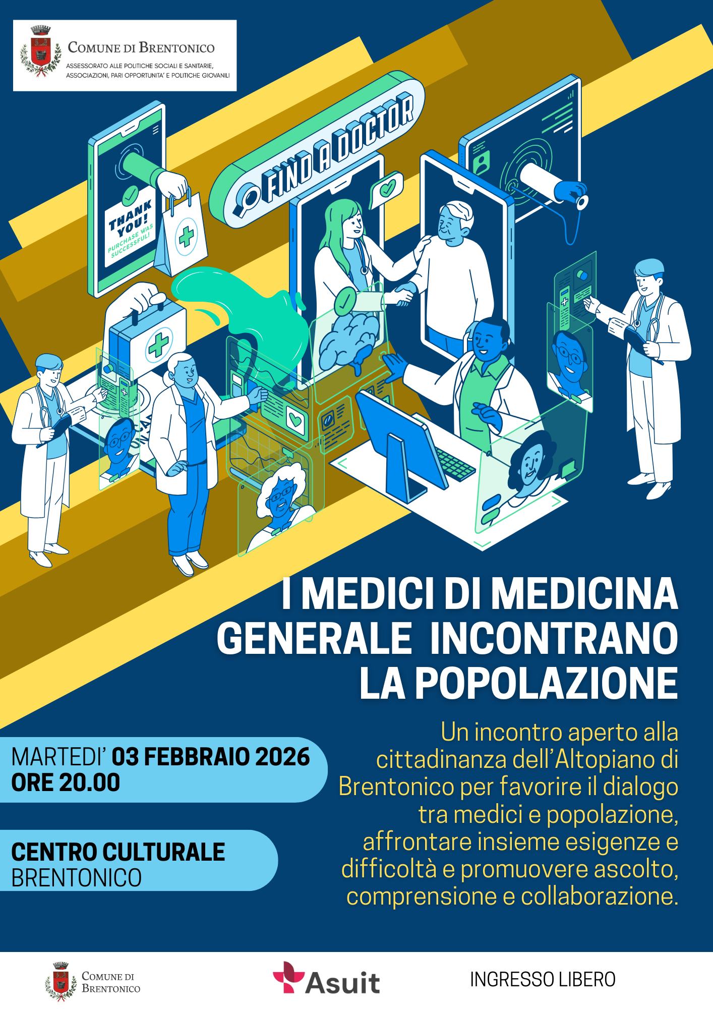 Un incontro aperto alla cittadinanza dell’Altopiano di Brentonico per favorire il dialogo tra medici e popolazione, affrontare insieme esigenze e difficoltà e promuovere ascolto, comprensione e collaborazione.