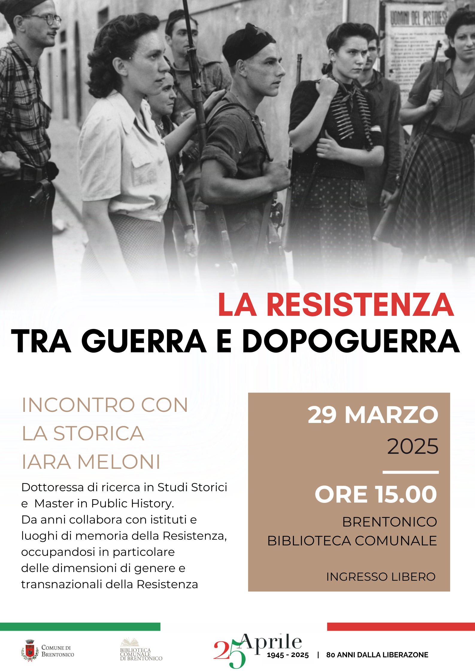 Da anni collabora con istituti e luoghi di memoria della Resistenza, occupandosi in particolare delle dimensioni di genere e transnazionali della Resistenza.