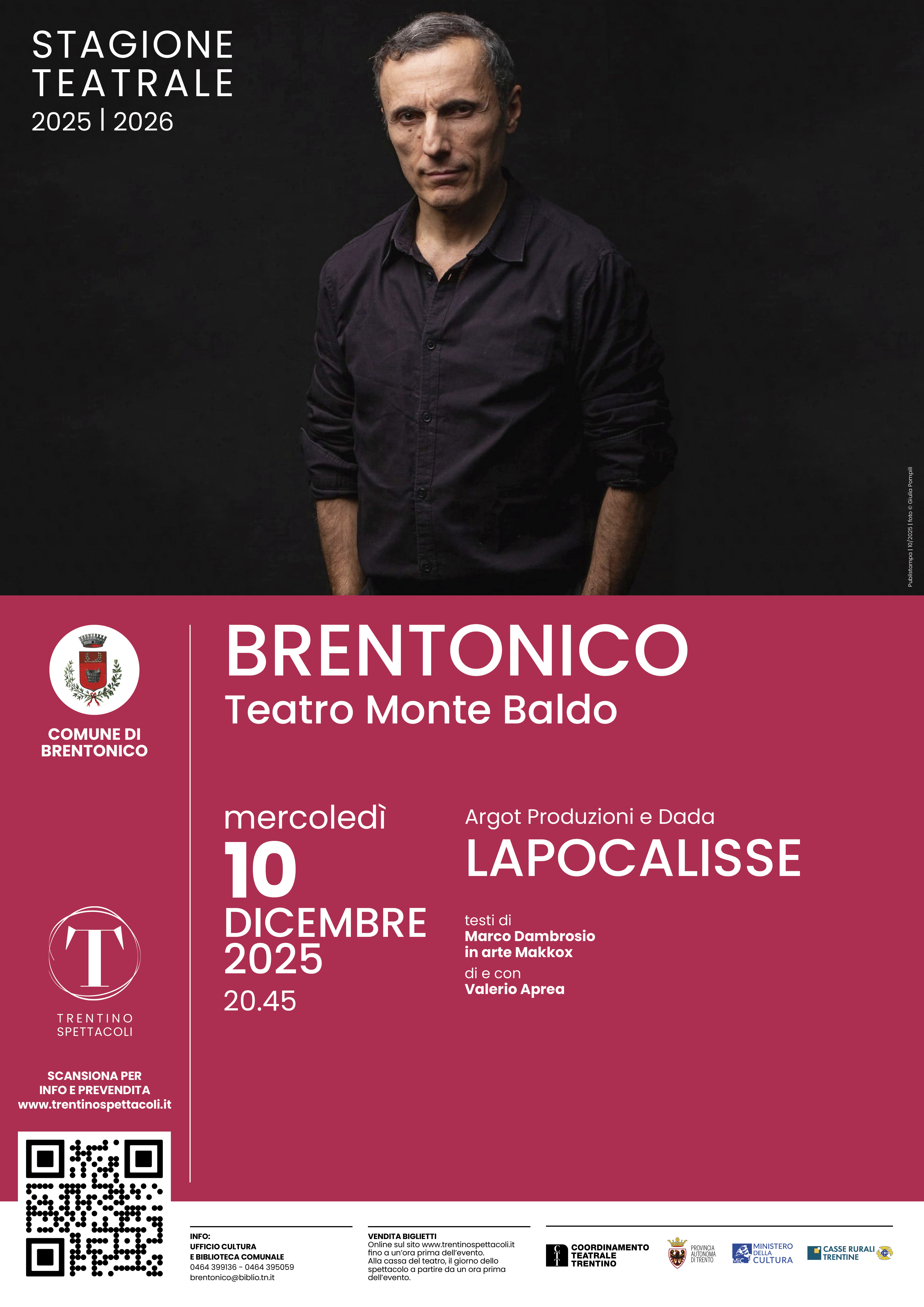 questa rotta? Dalla scienza al suo opposto, dagli algoritmi alle abitudini quotidiane, dalla politica al progresso e all’inerzia che lo frena. In questo nuovo spettacolo teatrale Valerio Aprea fa un assolo iperbolico sulla nostra resistenza e difficile adattabilità al nuovo, in una circumnavigazione attorno al concetto di cambiamento, necessario ad affrontare il buio che ci minaccia.
