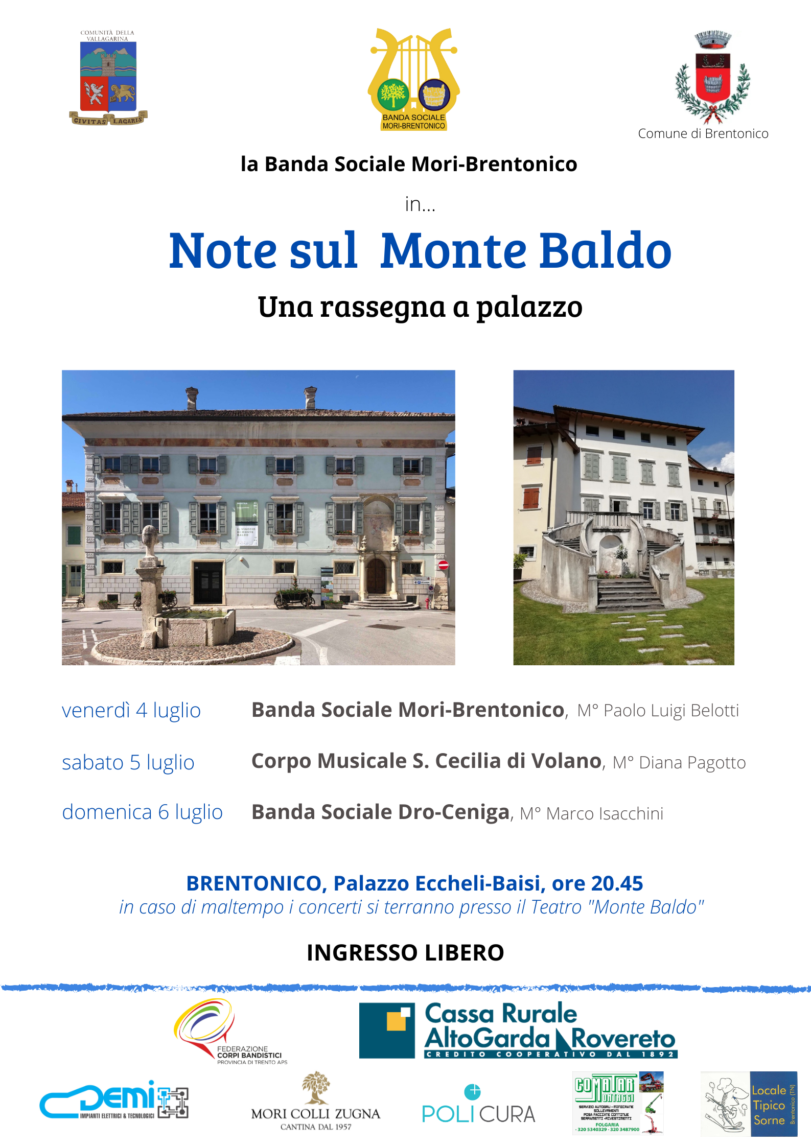 Cos'è - venerdì 4 luglio: Banda Sociale Mori-Brentonico- sabato 5 luglio: Corpo Musicale Santa Cecilia di Volano- domenica 6 luglio: Banda Sociale Dro-Ceniga