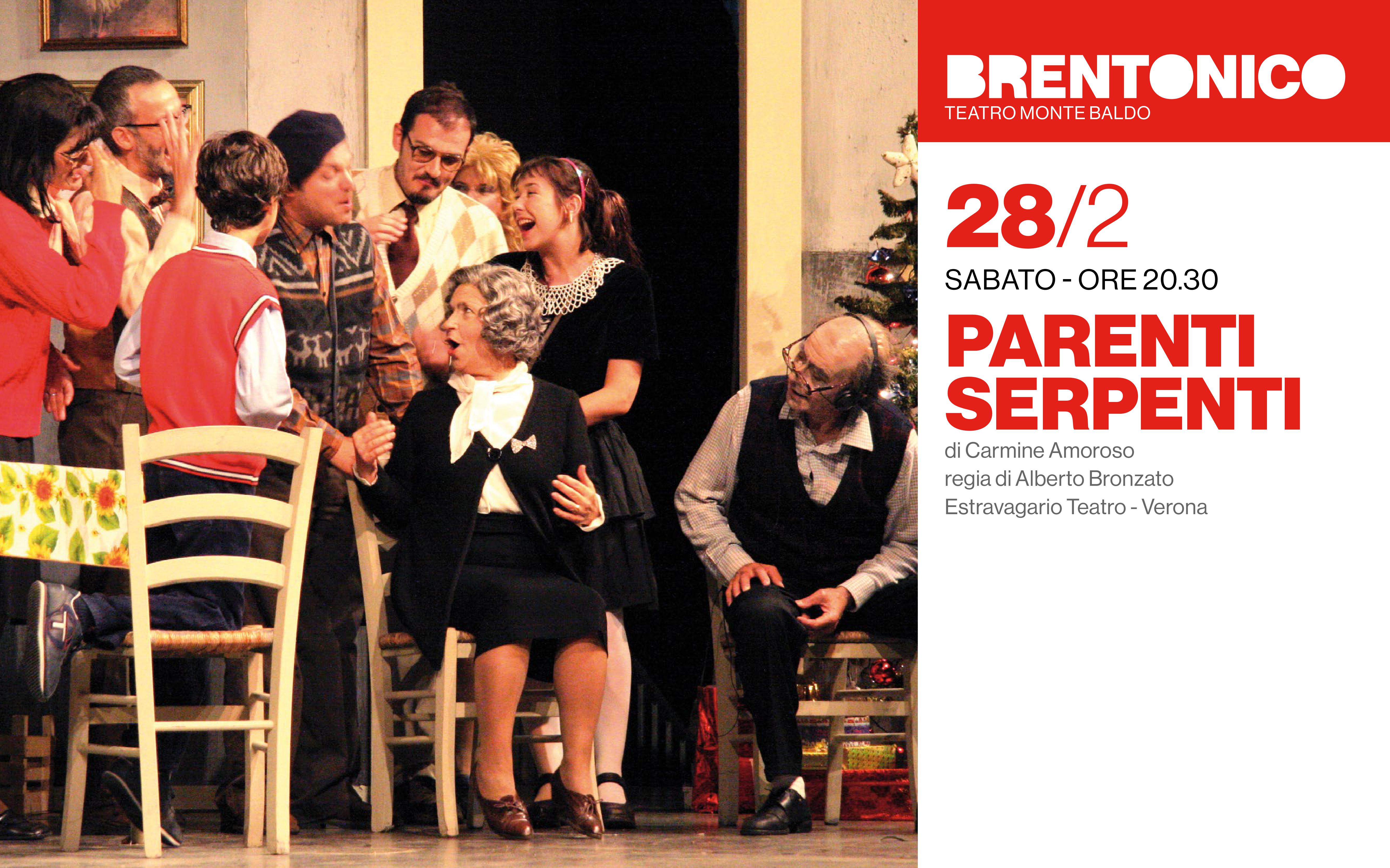 In questa commedia ritroviamo la “perfetta famiglia italiana”, con la sua atmosfera buonista e velenosa. Tutti i parenti si radunano dai nonni per il Natale, unica occasione per riunirsi: baci, abbracci, capitone, Messa di mezzanotte, il cenone tradizionale è completo. Tutti insieme appassionatamente… finché il cielo è sereno. Poi, al minimo problema, scattano litigi, rancori e ripicche: sorelle contro cognate, nuore contro suocere, tradimenti e pettegolezzi. In fondo, a Natale siamo tutti più buoni salvo scoprire che sotto l’albero… i parenti son serpenti!!!