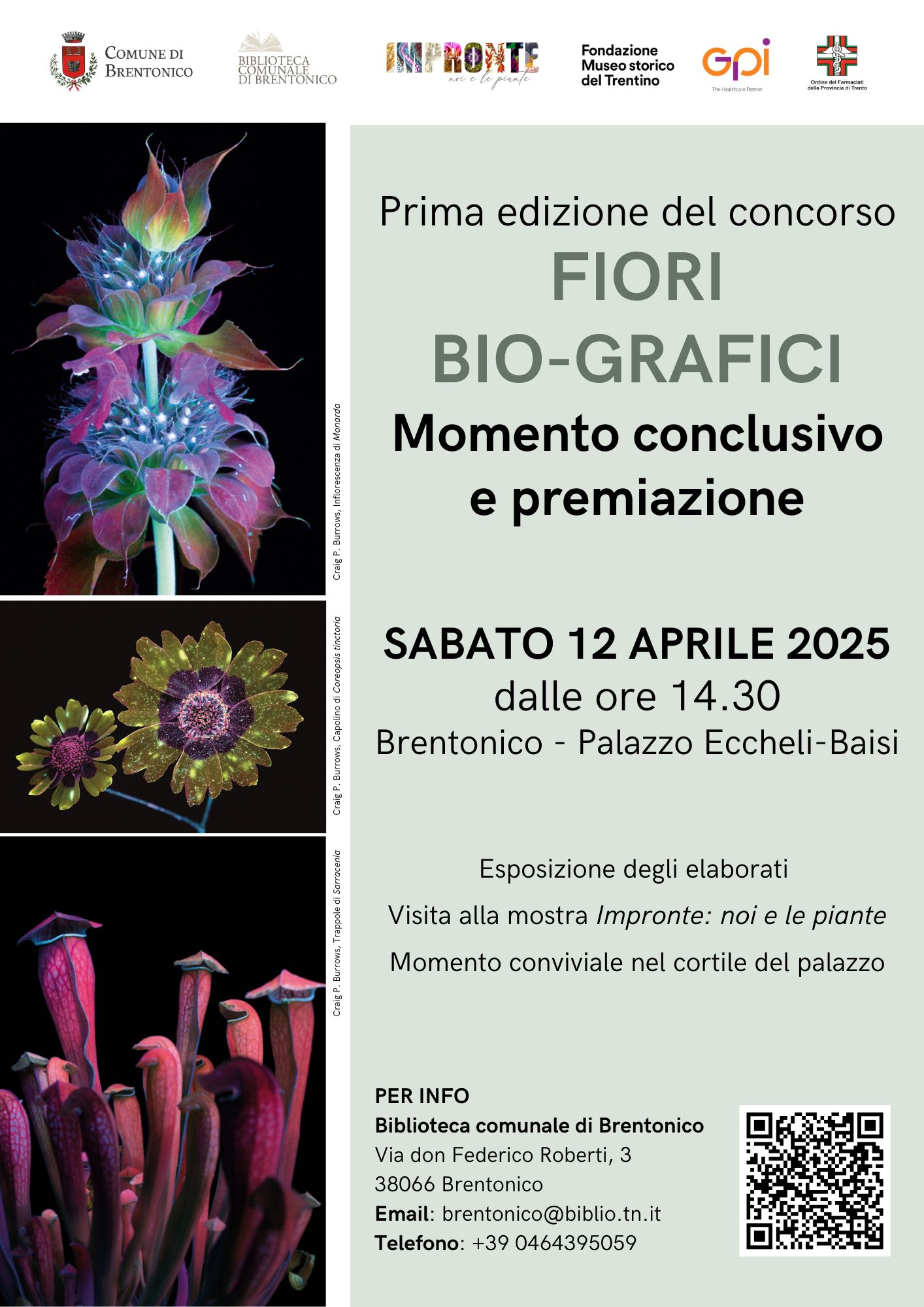 La cerimonia di premiazione si svolgerà a Brentonico sabato 12 aprile alle ore 14.30 presso Palazzo Eccheli-Baisi. I candidati premiati o segnalati dalla giuria saranno preventivamente avvisati entro la fine del mese di marzo. Si segnala inoltre che in occasione della premiazione sarà predisposta un'esposizione degli elaborati presentati (non solo quelli premiati e segnalati) e sarà ancora possibile, in via straordinaria, visitare la mostra Impronte: noi e le piante. Seguirà un momento conviviale nel cortile interno del palazzo.La partecipazione è libera e aperta a tutti.